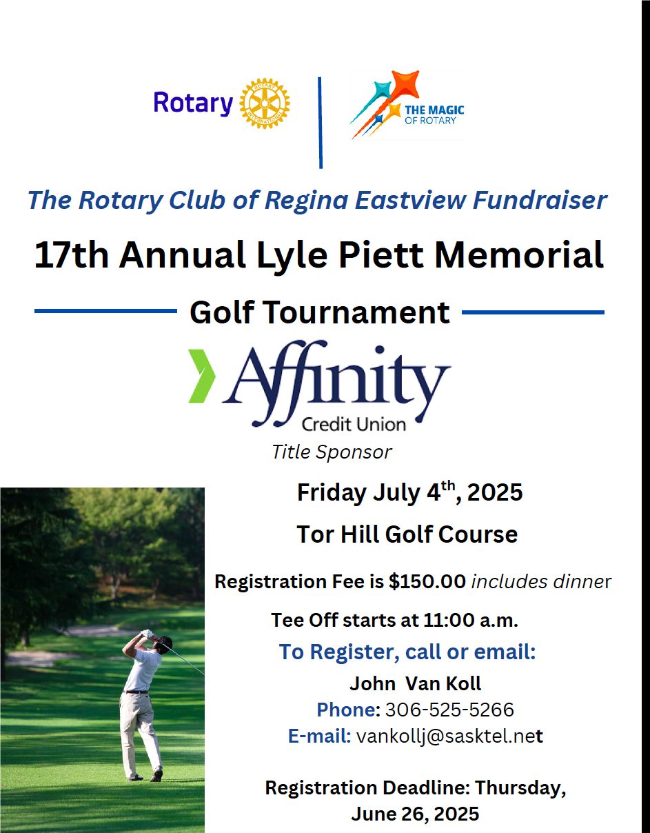 This is a major event for the Rotary Club of Regina Eastview and we'd love to have you join us.