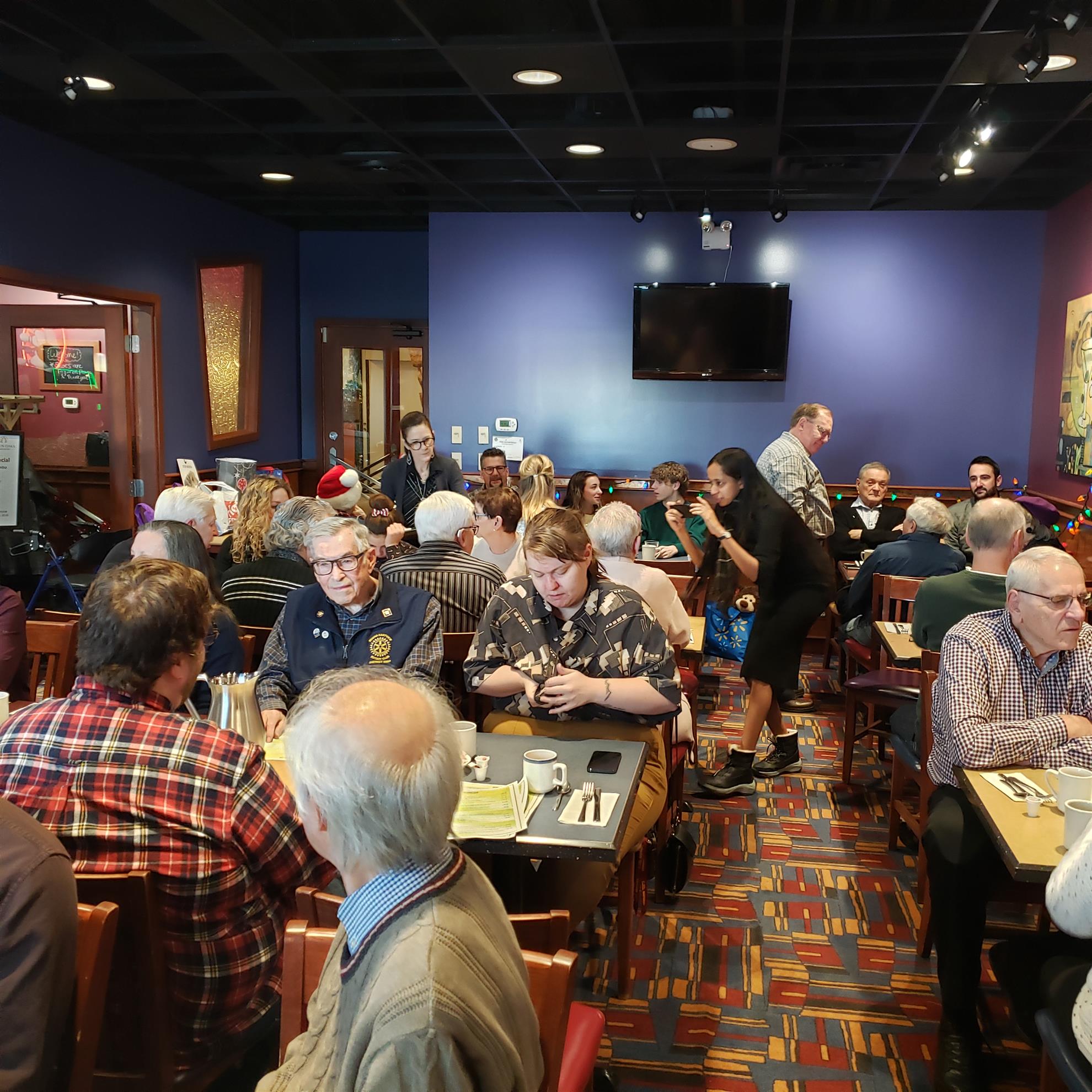 The 10:00 A.M. December 10th Brunch was a very fine event. President Jeff welcomed some 35 people into quite a packed side room at the Seven Oaks All Day Eatery for the 2022 Christmas Rotary Family Brunch. The atmosphere was festive; the site was ideal for our size; attendees brought "gifts of warmth" for the Canadian Mental Health Association - Regina Branch Christmas Celebration; the staff were focused and effective (those last getting to eat may have a different impression; and, noise level in the room suggested there was appreciated shared conversation.